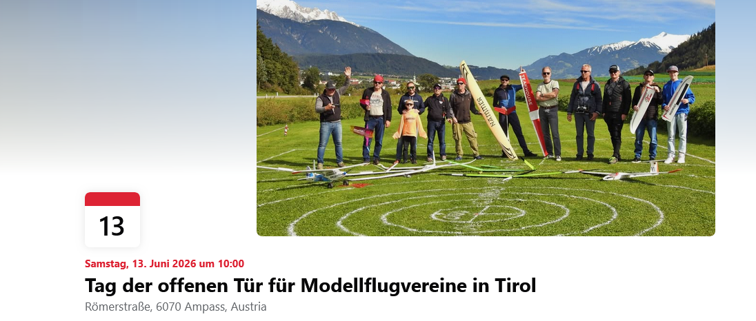 Veranstaltung von Aero-Club Tirol Sektion Modellflug Olympiaworld Innsbruck, 1. März 2025 Laufzeit: 5 Std. Öffentlich · Jeder auf und außerhalb von Facebook Die Gelegenheit einmal in einer „richtigen“ Halle, nämlich…