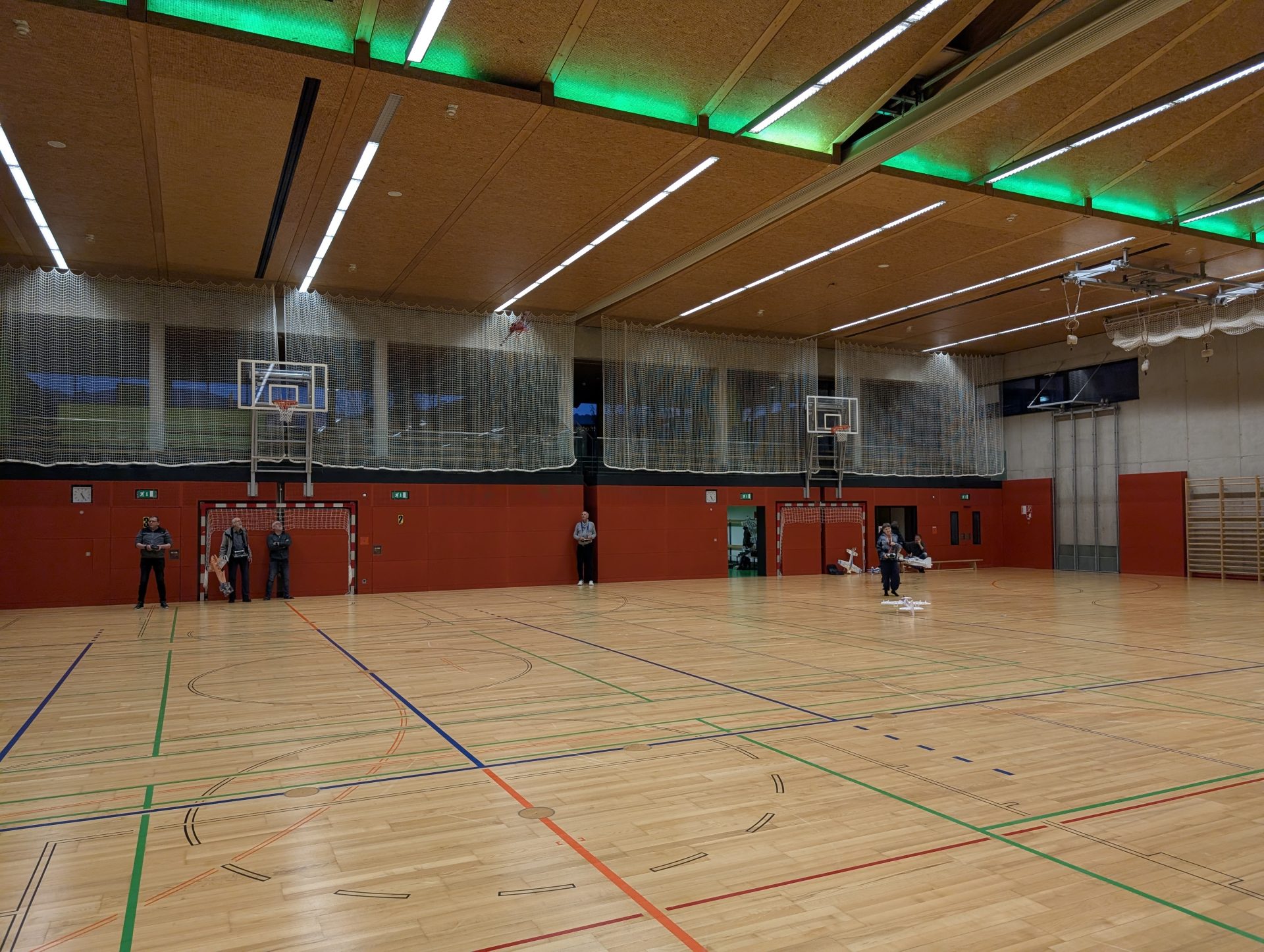 Bitte Hausschuhe mitbringen – die Halle darf nicht mit Schuhen betreten werden!
